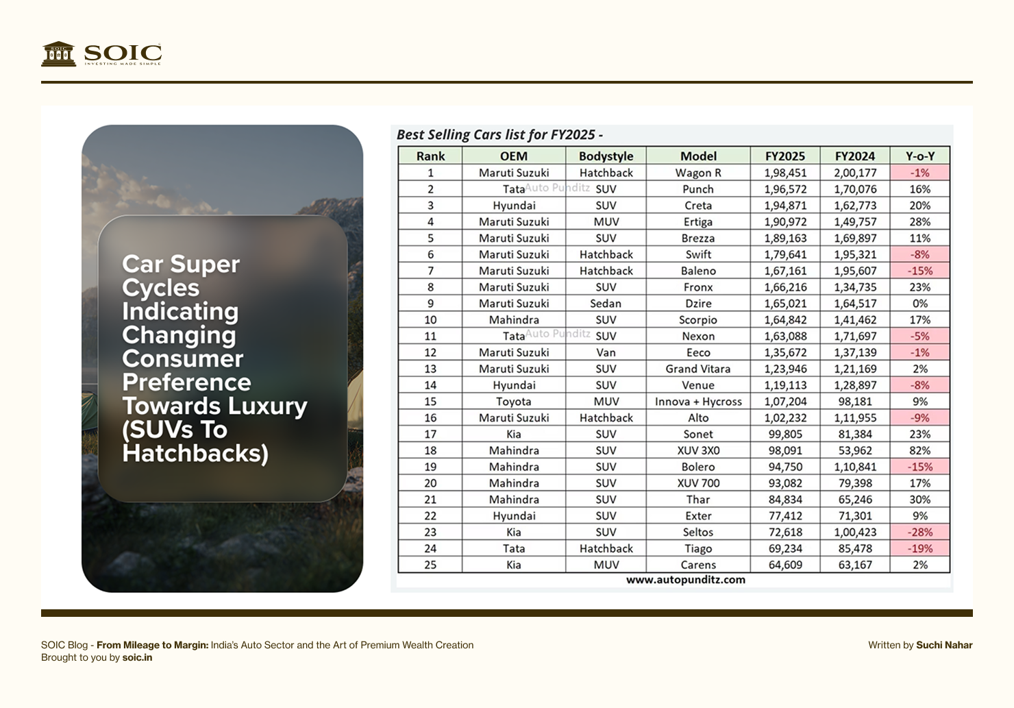 As seen in above data, most of the models that were best selling in the country in FY25 were SUVs and not Hatchbacks showing the shift in the consumer preference.